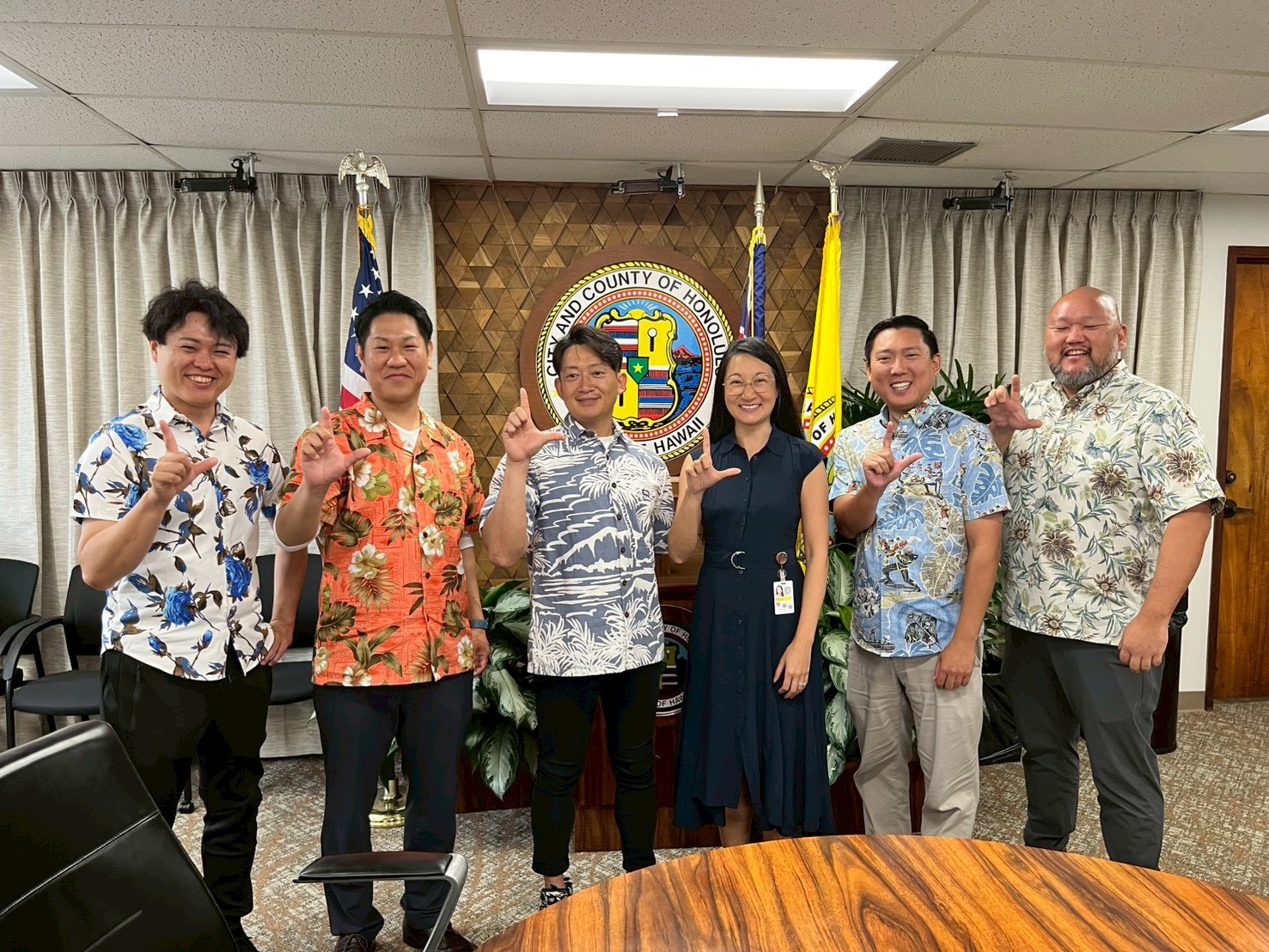 また、ホノルル市役所にてホノルル市長代理との意見交換会を行い、倉敷、児島の発信や今後出来ることの意見交換を行い有意義な時間を過ごすことが出来ました。
